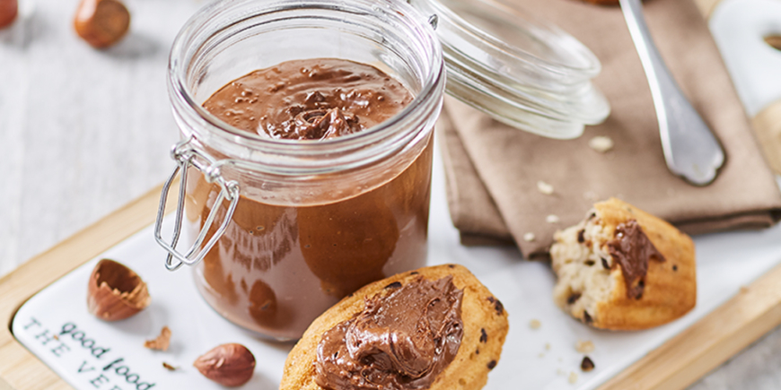 A proposer à l'heure du goûter, tartiné sur des Madeleine bio Pépites de chocolat Ker Cadélac.