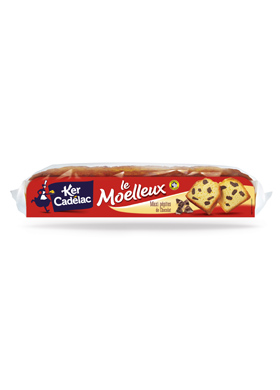 - Découper des tranches fines de Moelleux Maxi Pépites de Chocolat KER CADELAC et reconstituer un fond de tarte avec les tranches dans le fond d'un emporte-pièce.
